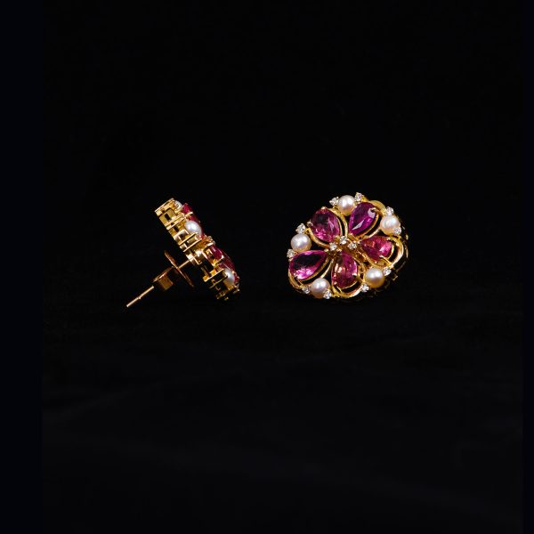 Our Mother-of-Pearl Diamond Studs exude an ethereal, sophisticated charm. These luxurious earrings are crafted in 18-karat gold, with 2.9 carats of oval-shaped Mother of Pearl, 0.85 carats of round brilliant cut diamonds and freshwater pearls.