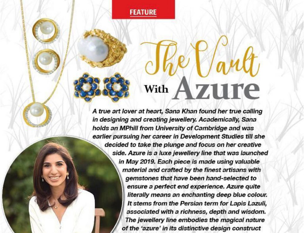 A true art lover at heart, Sana Khan found her true calling in designing and creating jewellery. Academically, Sana holds an MPhil from University of Cambridge and was earlier pursuing her career in Development Studies till she decided to take the plunge and focus on her creative side. AZURE is a luxe jewellery line that was launched in May 2019. Each piece is made using valuable material and crafted by the finest artisans with gemstones that have been hand-selected to ensure a perfect end experience. AZURE quite literally means an enchanting deep blue colour. It stems from the Persian term for Lapis Lazuli, associated with a richness, depth, and wisdom. The jewellery line embodies the magical nature of the ‘azure’ in its distinctive design construct.